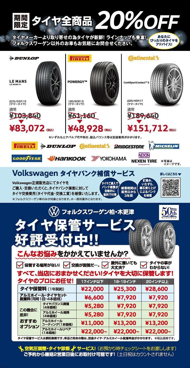 特価:サマータイヤ及びオールシーズンタイヤ 20%OFF