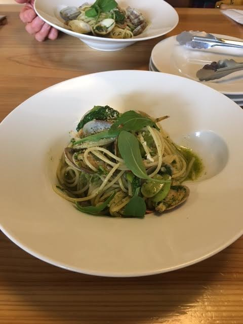 メインディッシュのパスタは、春野菜とあさりが入っているパスタでございます![]()