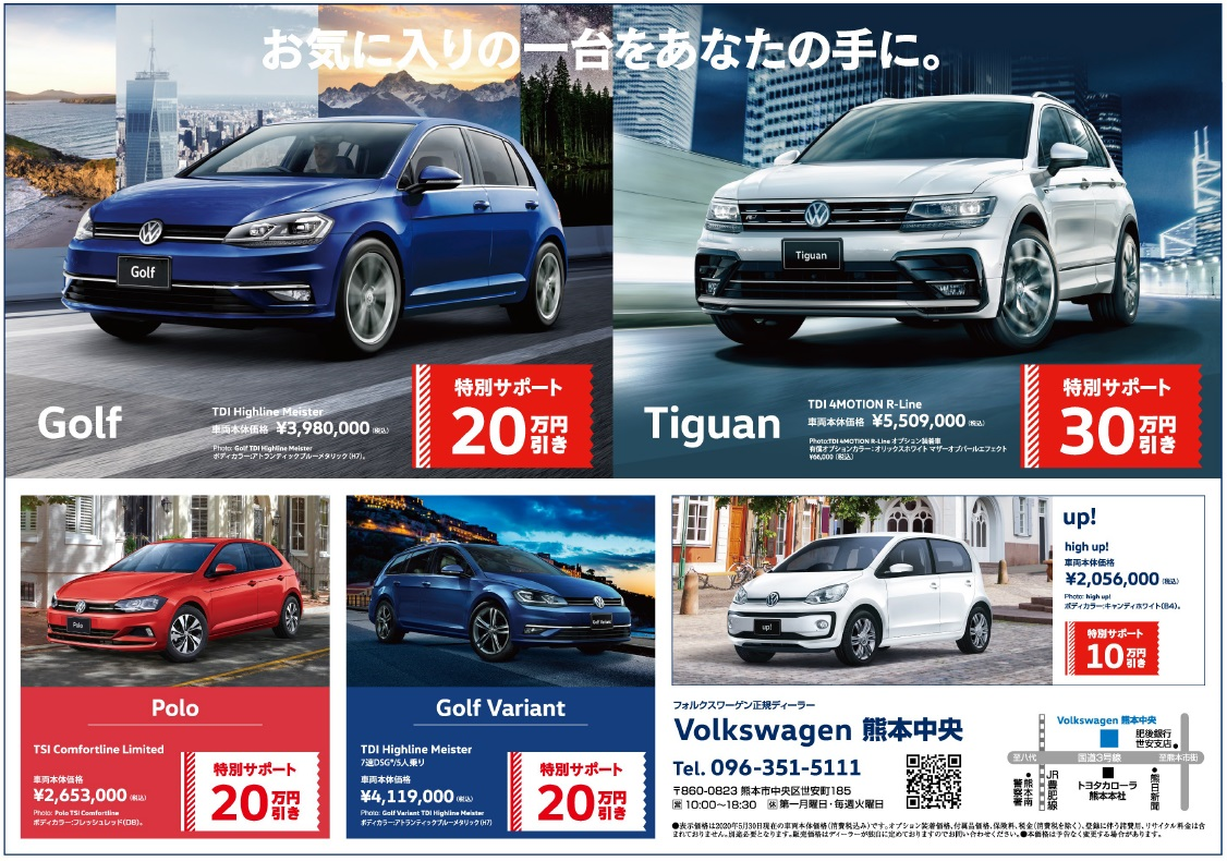 T-cross以外にも【Golf、Polo、 Tiguan、Up!】など人気車種の特別サポートも