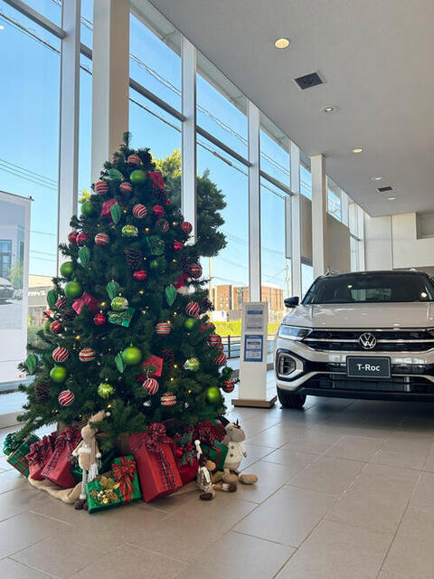 こんにちは フォルクスワーゲン久留米です ショールームに、ひと足先にクリスマスツリーが届きました ショーケースもクリスマス仕様に 少し早めのクリスマス気分をぜひ味わってください