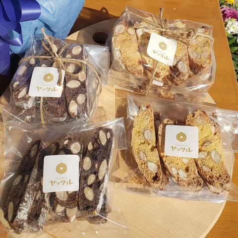こんにちは! マツシマ地元リボンの取り組み、限定お菓子のご案内です 7月23日・24日の2日間限定で、ご来店のお客様に晴耕舎ヤックルの『ビスコッティ』を 提供いたします 晴耕舎ヤックルは、滋賀県大津市八屋戸にある山と琵琶湖に囲まれたパン屋さんです 国産小麦・天然酵母を使ったパンを中心にカンパーニュ、バケット等日替わりで焼いておられます。 提供するビスコッティは、カリカリとした食感が特徴にイタリア伝統のお菓子です。 プレーンには、アーモンドとマカダミアを チョコには、アーモンドとチョコチップをたっぷりと使用しております ぜひご賞味下さい!