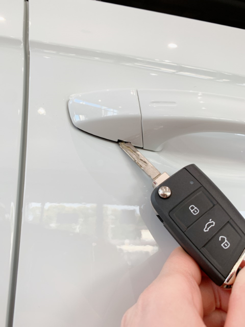 皆さんこんにちは 思い出したかのように寒い日々が戻ってきましたね 私は毎日凍えていますが、みなさんいかがお過ごしですか? さて本日は、先日投稿した『キーの電池切れでエンジンがかからなくなってしまった時の対処法』の続編です 前回は、自分でキー電池を交換する方法をお伝えしました 今回は、近くにコンビニやホームセンターがなかった場合や、 難しくて自分で交換できなかった場合に役立つ豆知識です キーバッテリーが切れた時の、ドアロックの開け方とエンジンのかけ方をお伝えします まず、鍵を出します 運転席側のドアノブを下から見てみると、このように穴があいているのがわかります その穴に鍵を入れて、ドアノブを引きながらこぜると、カバーが外れて鍵穴が出てきます 鍵穴に鍵を差し込んで回すとロックが開きます ※車種によっては、盗難防止のアラームがなる事がありますが、エンジンをかけると止まります 続いてエンジンのかけ方をご説明します ハンドルの右側、ワイパーレバーの下あたりをよく見ていただくと、電波のようなマークがあります そこにキーを当てて、ブレーキを踏みながらスタートボタンを押すとエンジンがかかります マークがよく見えない場合は、ワイパーレバーの下あたりにキーを当てて、 当てる場所を変えながら何度か試してみてください 一度エンジンがかかっても、毎回この工程をしないといけないので、早めの電池交換をおすすめします サービスプラスにご加入の方は無償で交換できますので、お近くの販売店までご来店ください また、この方法を試してみてもエンジンがかからない場合は、 キー電池以外の不具合が考えられます その際は販売店まで、お気軽にご連絡下さいませ フォルクスワーゲン草津 〒525-0053 滋賀県草津市矢倉2-6-10 077-569-5399 フォルクスワーゲンエマージェンシー 0120-993-599 JAF 0570-00-8139