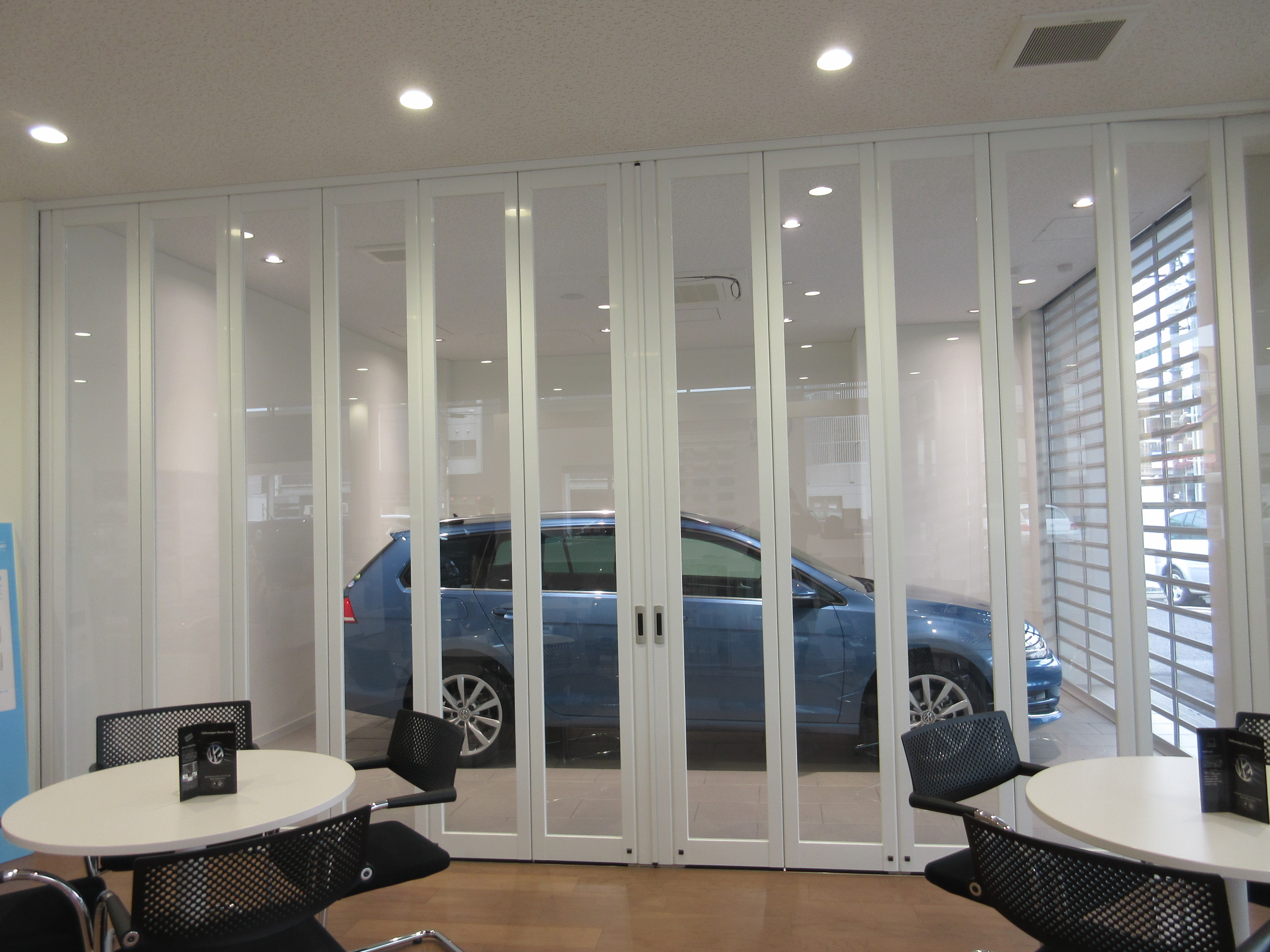 扉が透明になっているため、待合のスペースからもお車を見ていただける造りになっています![]()