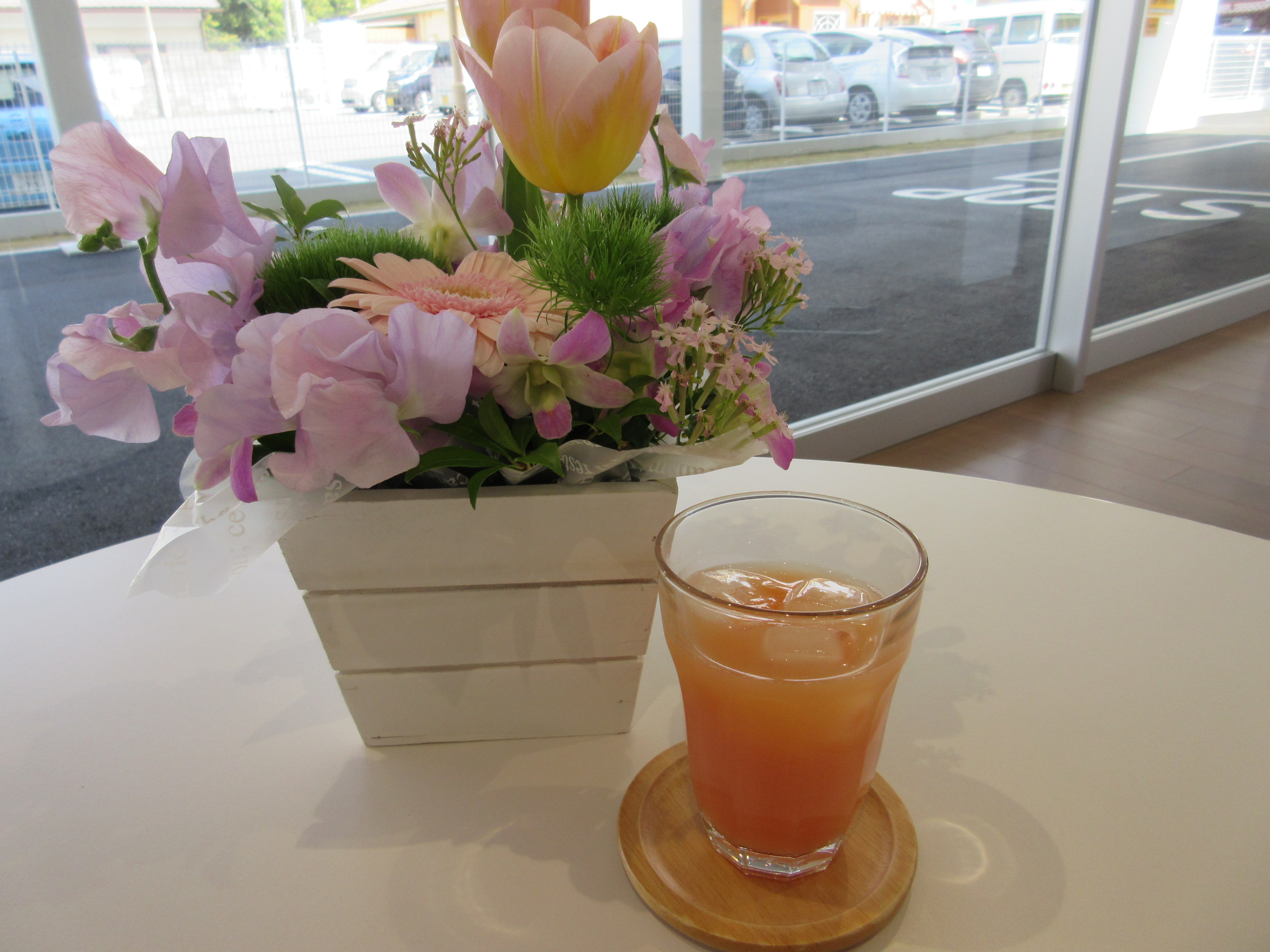 今月はピンクグレープフルーツジュースをご用意しております![]()