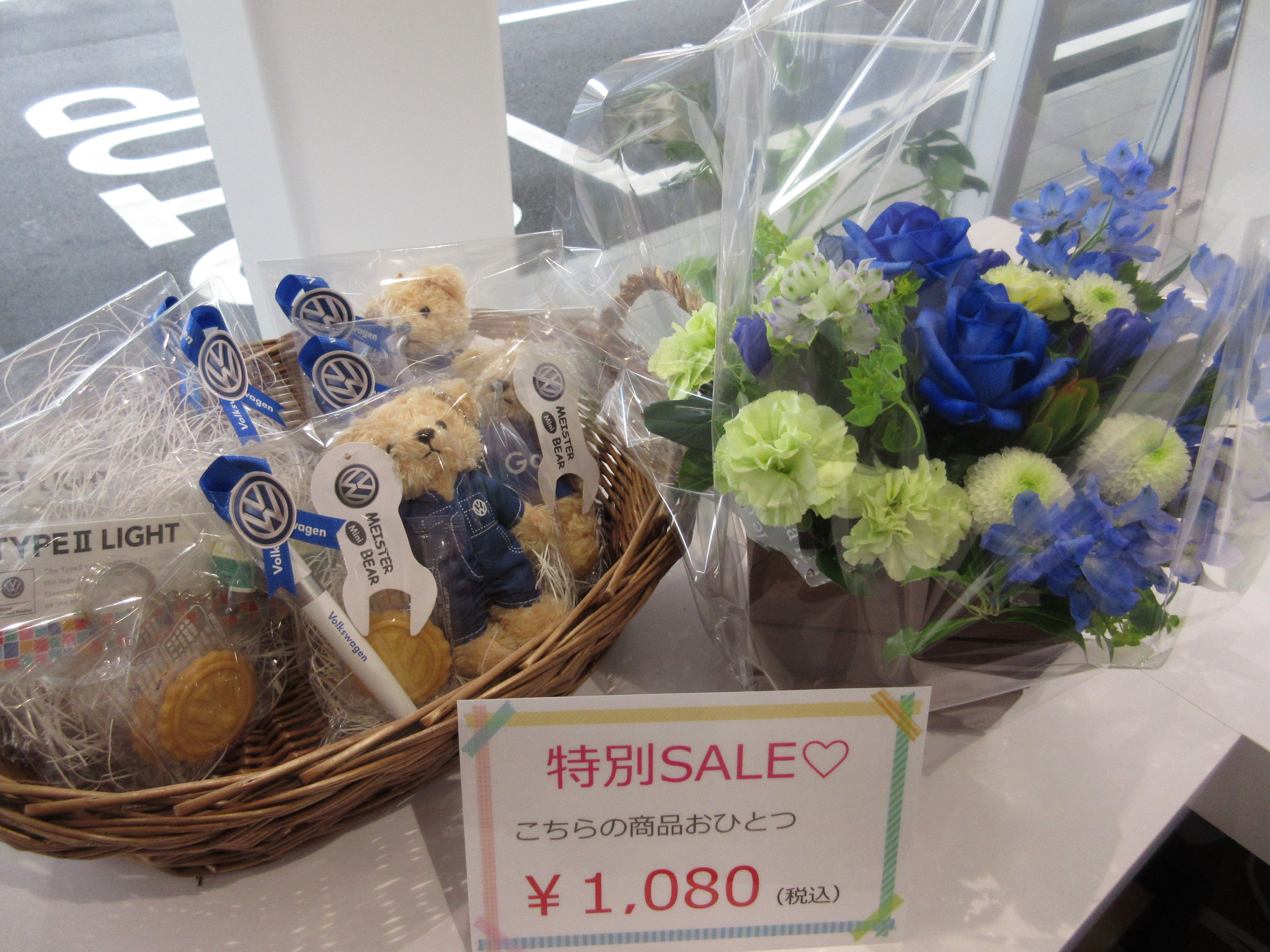 本日ご納車の方への鮮やかなブルーの素敵なお花です