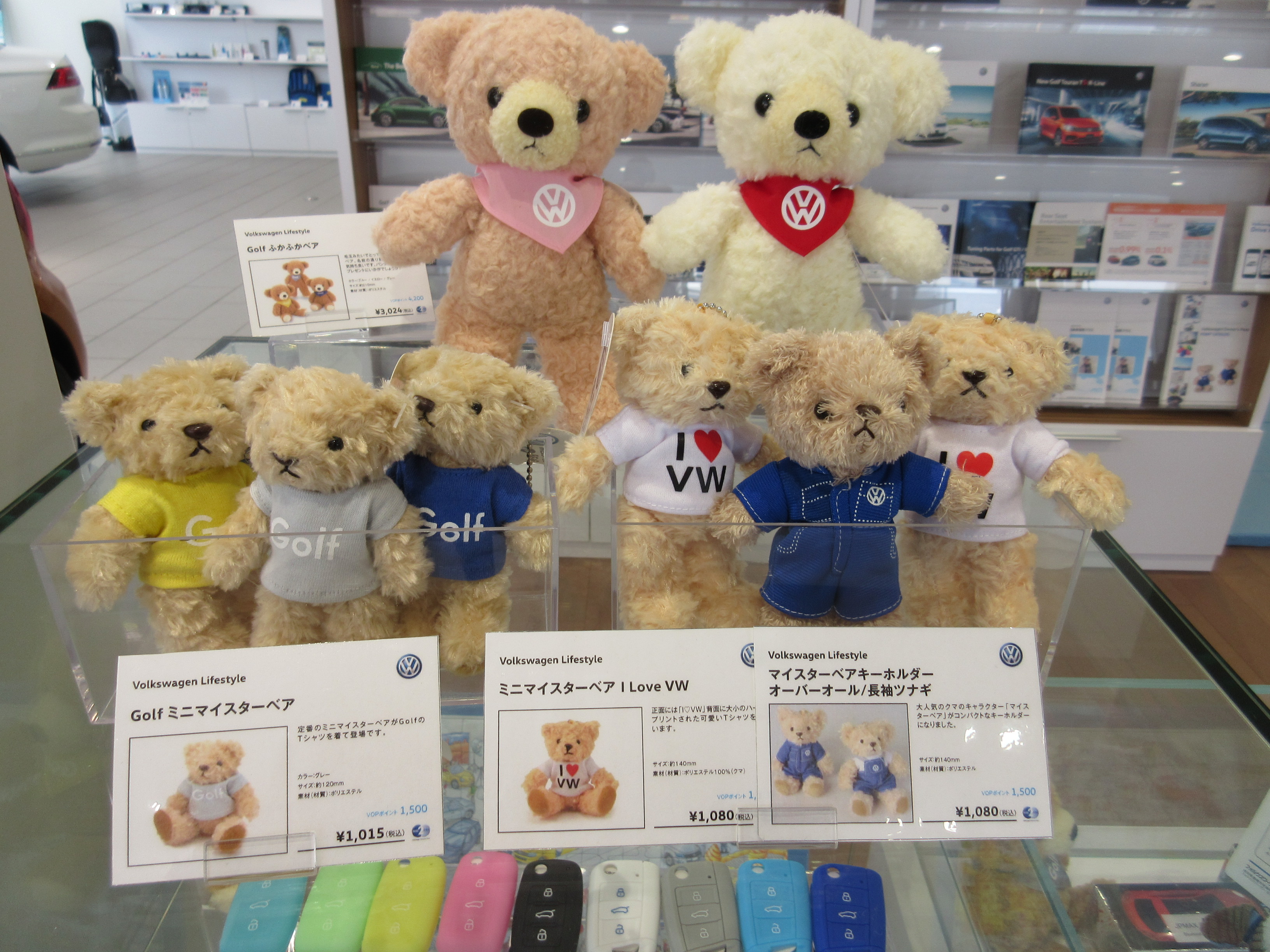 他にも大人気のVolkswagenマイスターベアやふかふかベアの色違いも展示しておりますので、