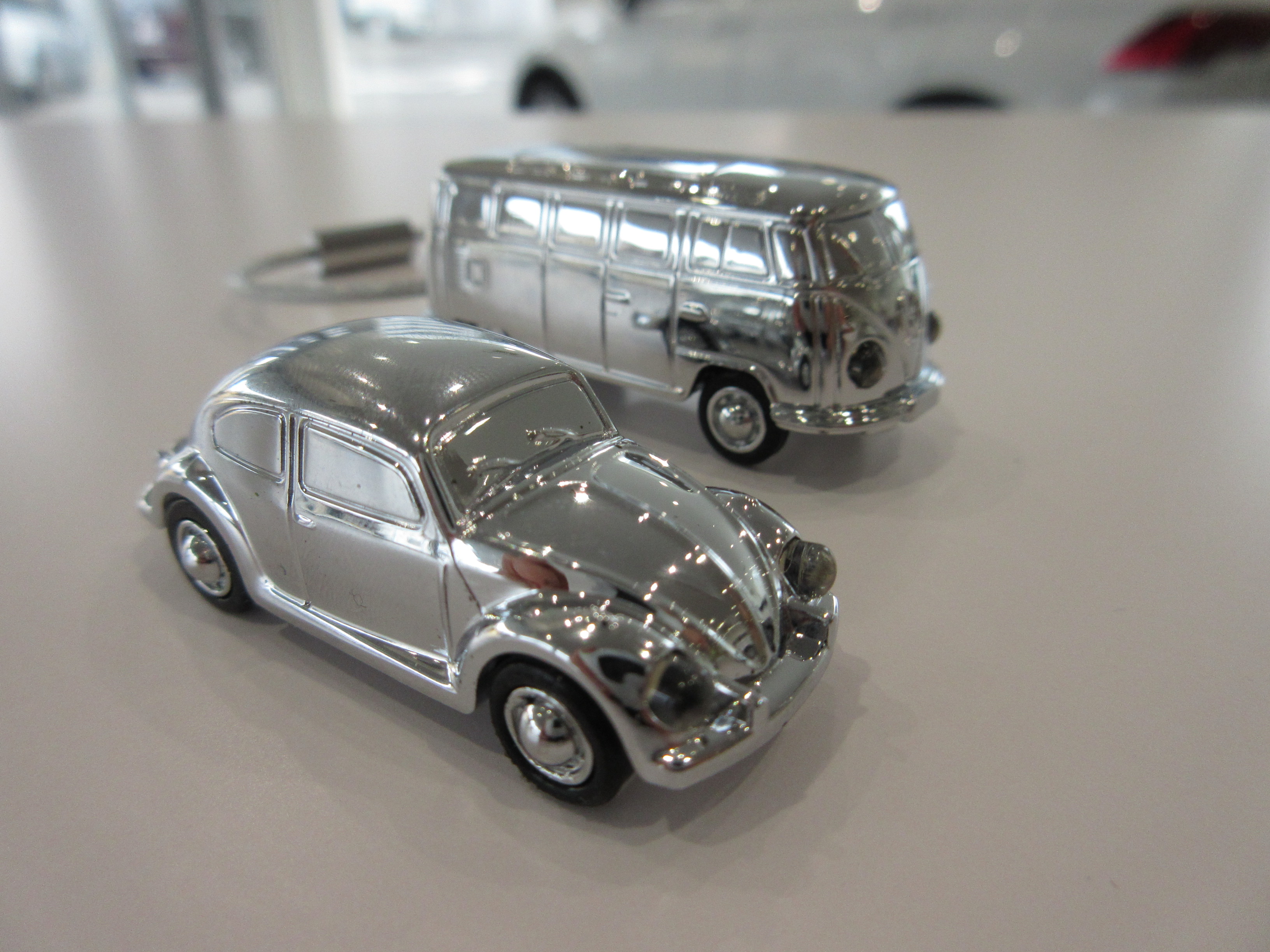 どちらもヘッドライト部分がLEDライトとなっており、ボタンを押すと白色のライトが灯るキーホルダーです![]()