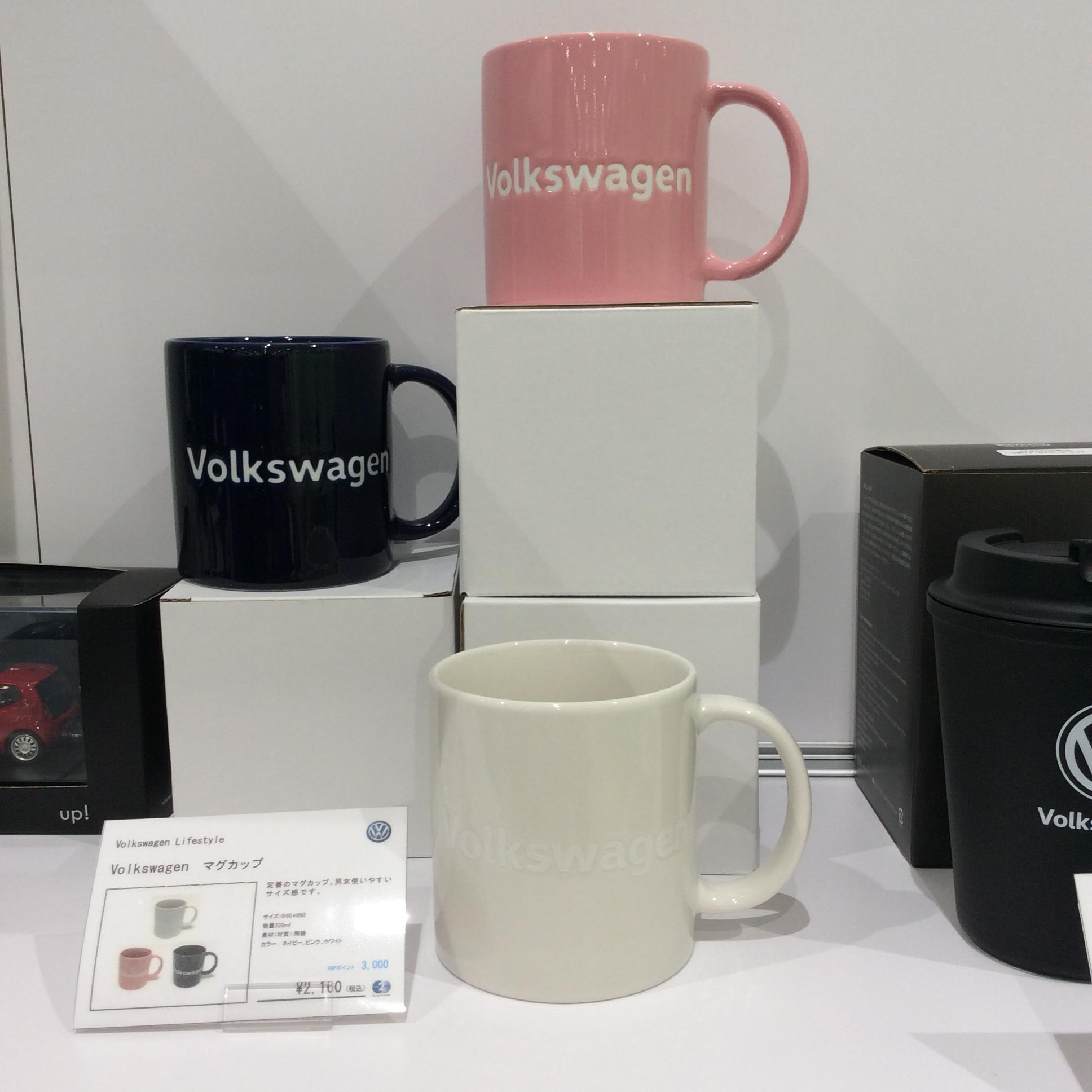 Volkswagenマグカップは使い易い3色展開で、Vokswagenのロゴがシンプルにあしらわれた