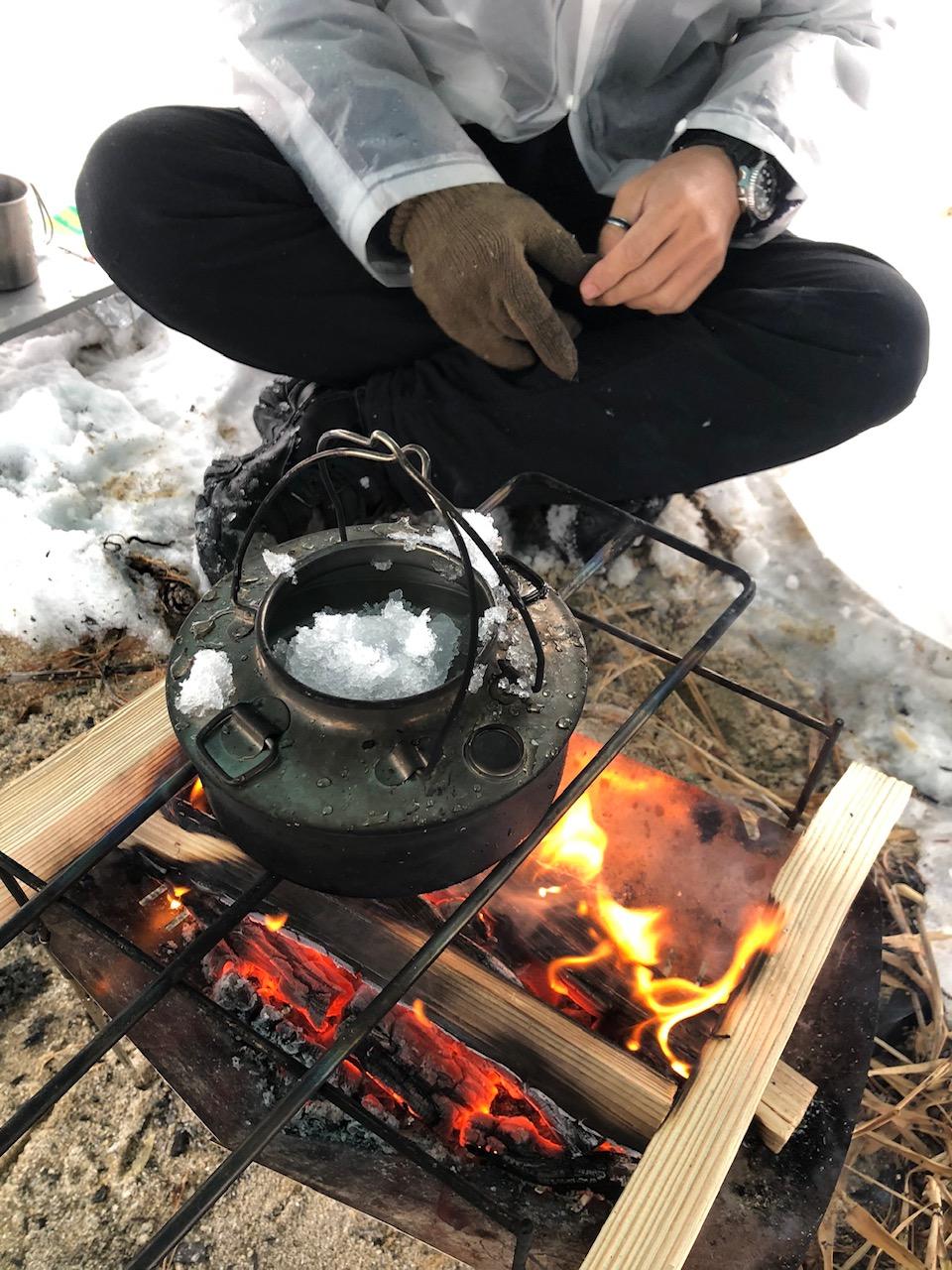 水がなくなったので、雪を沸かしてコーヒーいただきました。 まあまあキャンパーぽいことやってるでしょ 雪も寒さも乗り越えたんで、次は綺麗な景色を求めて。