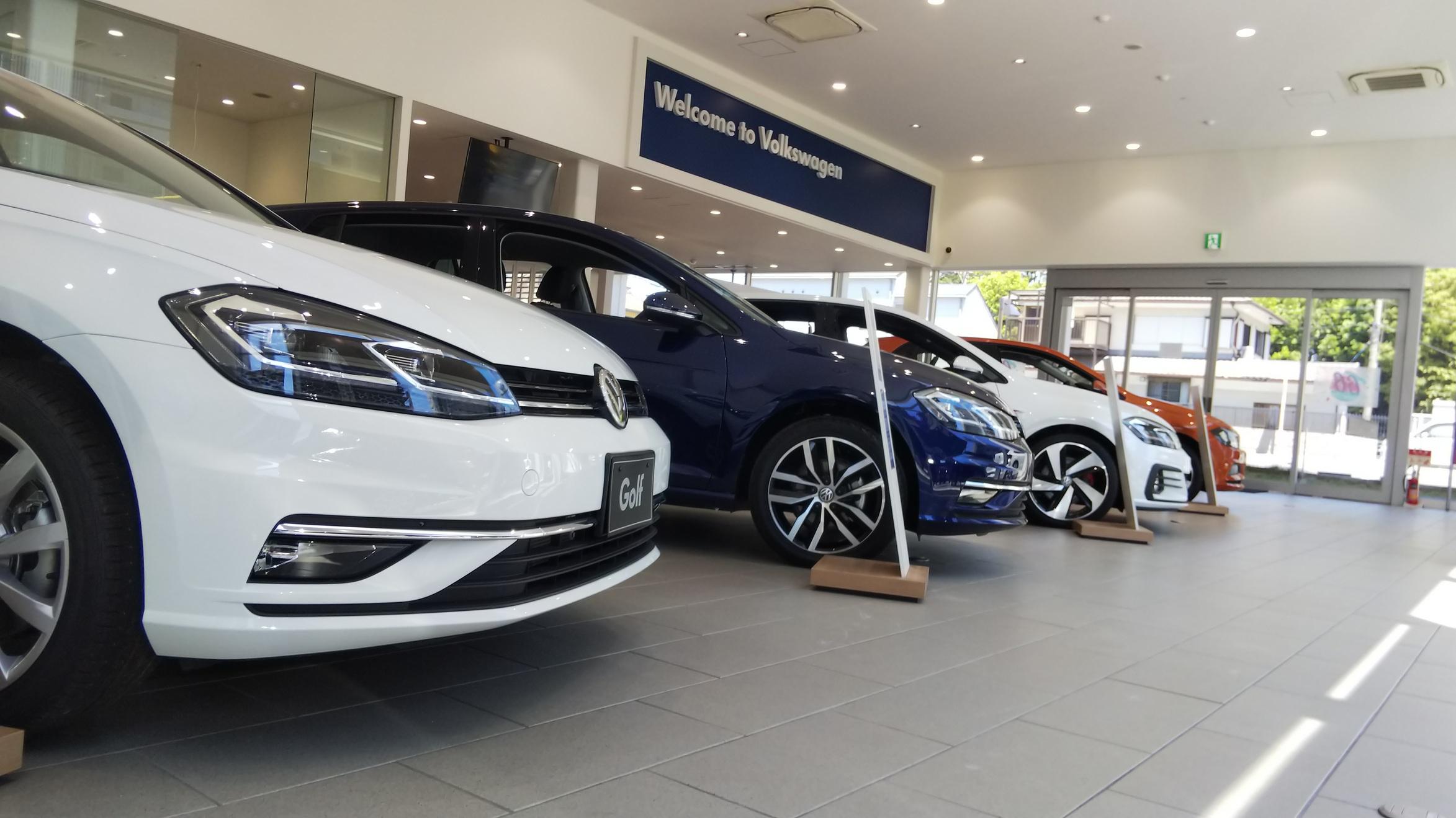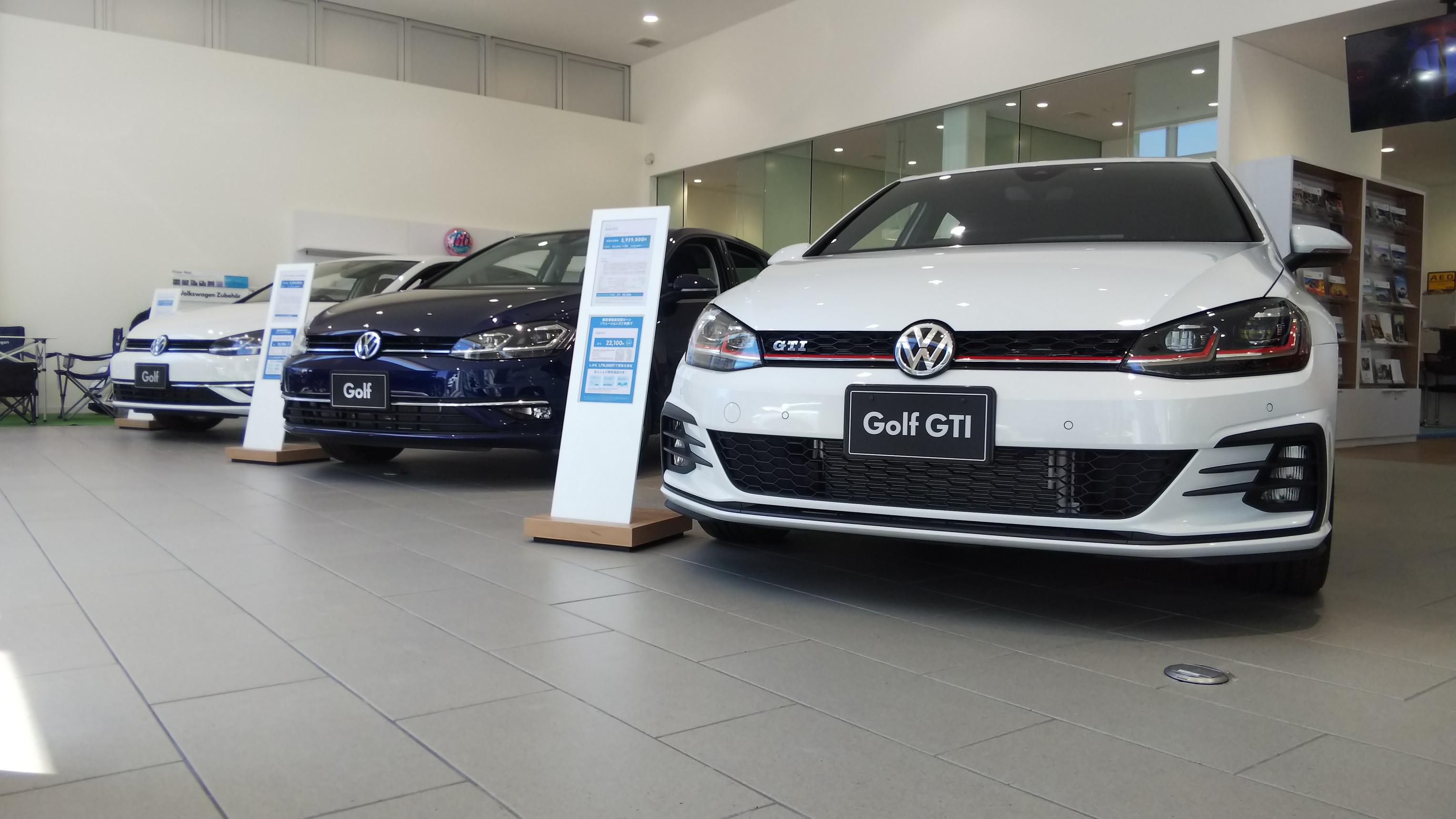ショールームの展示車も、本日「白一色」から「ゴルフ3兄弟」に入替えしました。