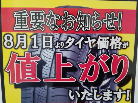 タイヤが値上がりします