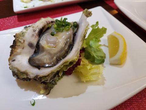 牡蠣 また牡蠣か!って思われている方、 おっしゃる通りです 京都の小さなイタリアンレストランで出て来ました 生でも食べられる新鮮な岩牡蠣を、軽くあぶってオリーブオイルで頂きました 絶品 これでしばらく食べ納めです