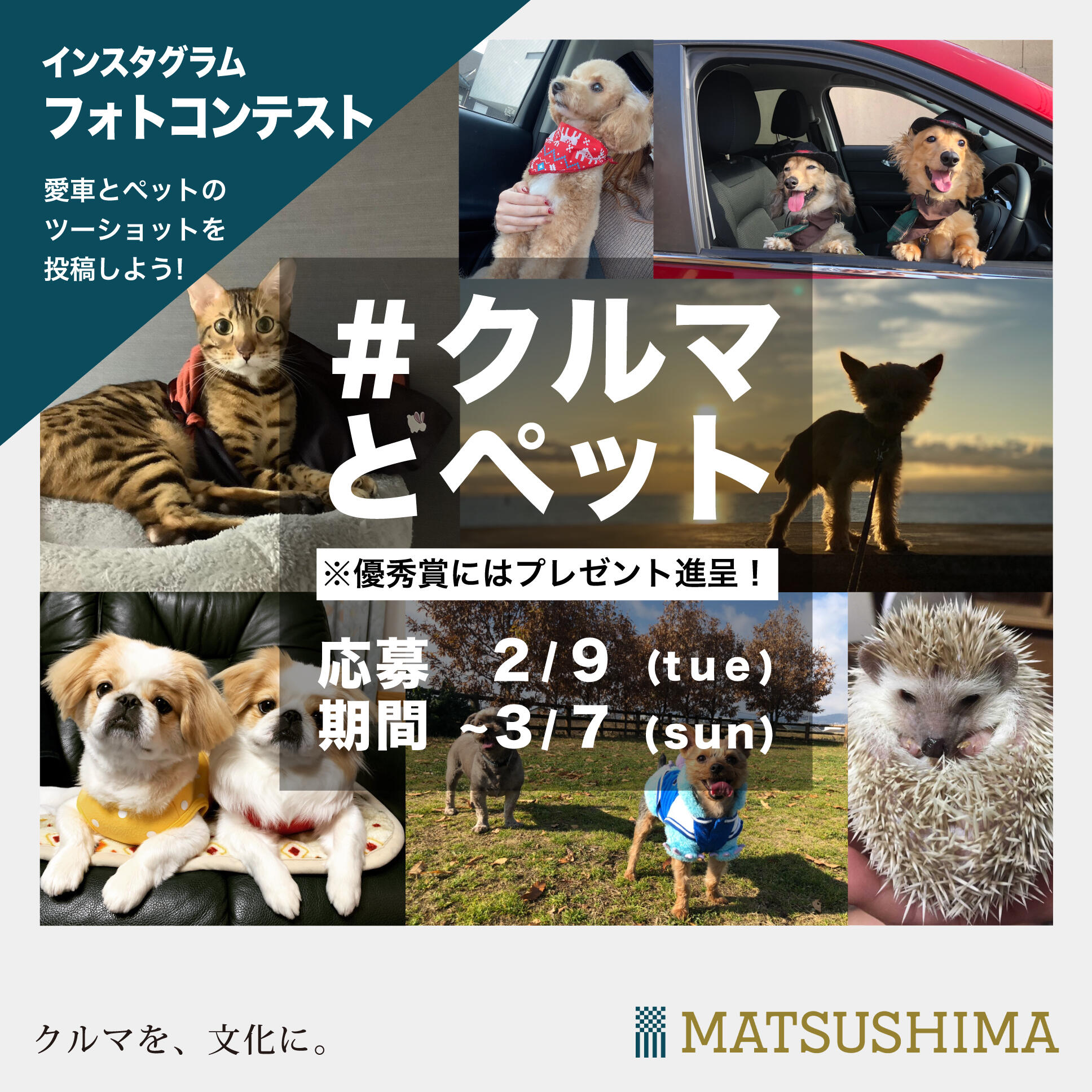 写真とともに、ペットと車にまつわる話がコメントに書いてあれば応募可能です