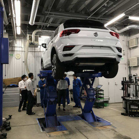 実はフォルクスワーゲン草津は工場が2Fにあります