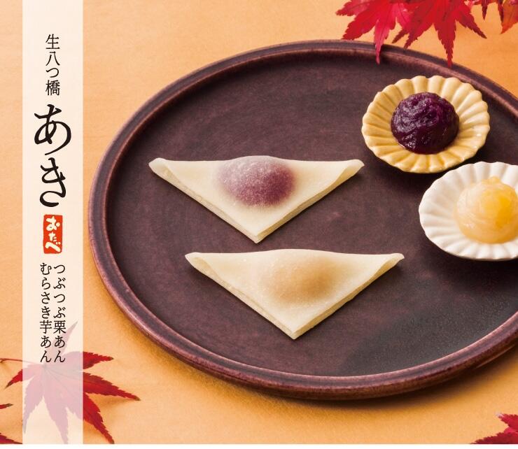 秋限定おたべと、新商品キャラメル味の生八ッ橋のセットです
