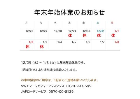 安全運転と風邪に気を付けて、よいお年をお迎えください