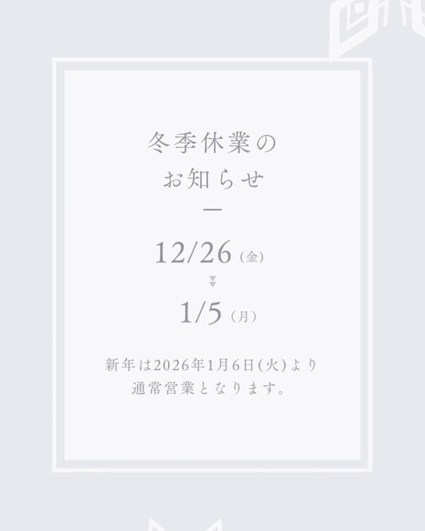 12/26(金)?1/5(月)の間、休業とさせていただきます。