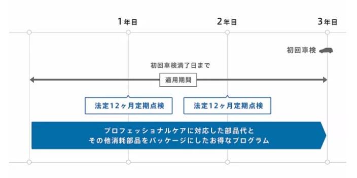初回車検まで1年ごとの定期点検、交換部品の交換工賃が無料になります