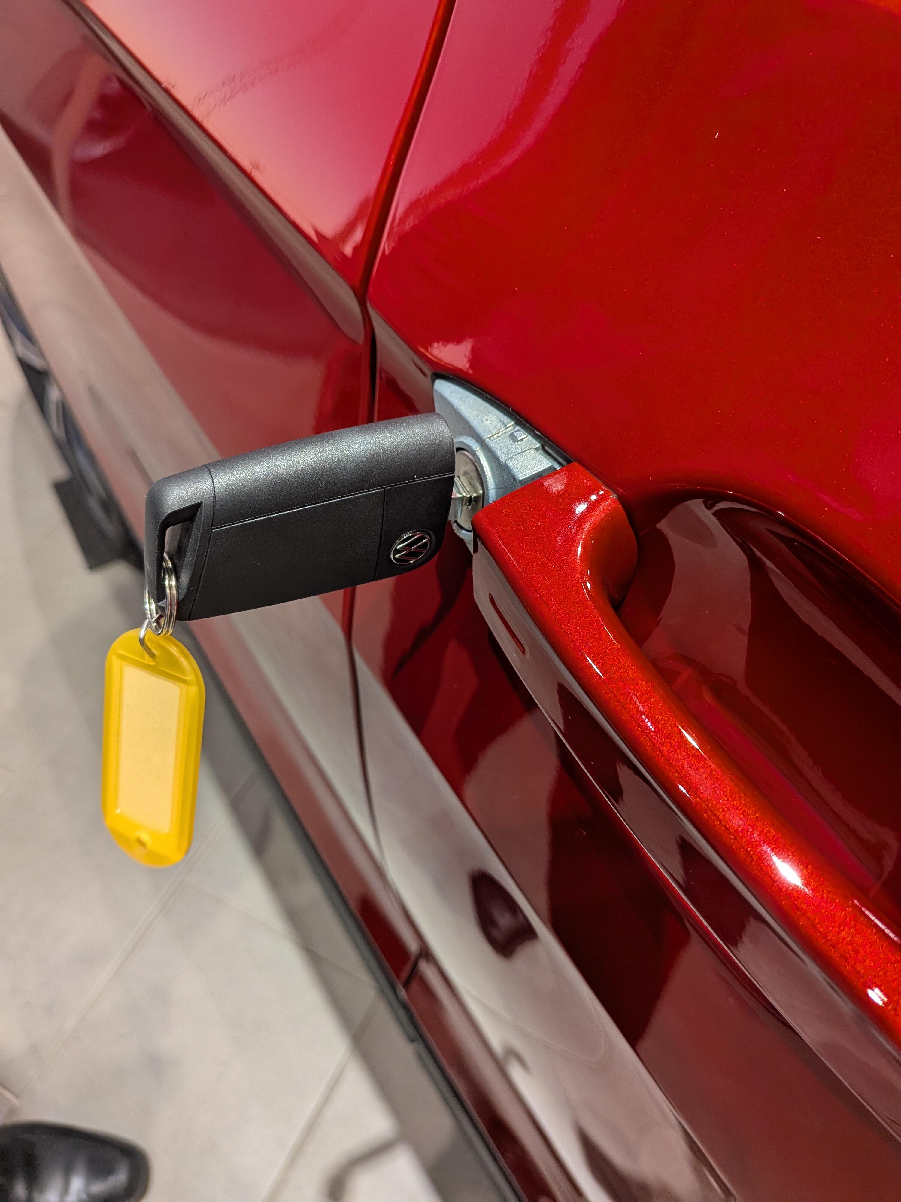 1,お車の取手の下にある隙間に鍵を差し込んで軽くひねります