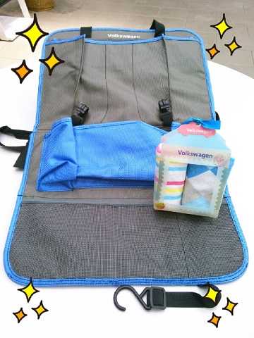 オリジナルマイクロファイバーミニタオル2枚セット(ご来場記念品)とオリジナルシートバックポケット(試乗・査定記念品)をプレゼント