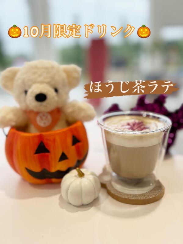 ほうじ茶ラテの上に、ホイップクリームをのせ、