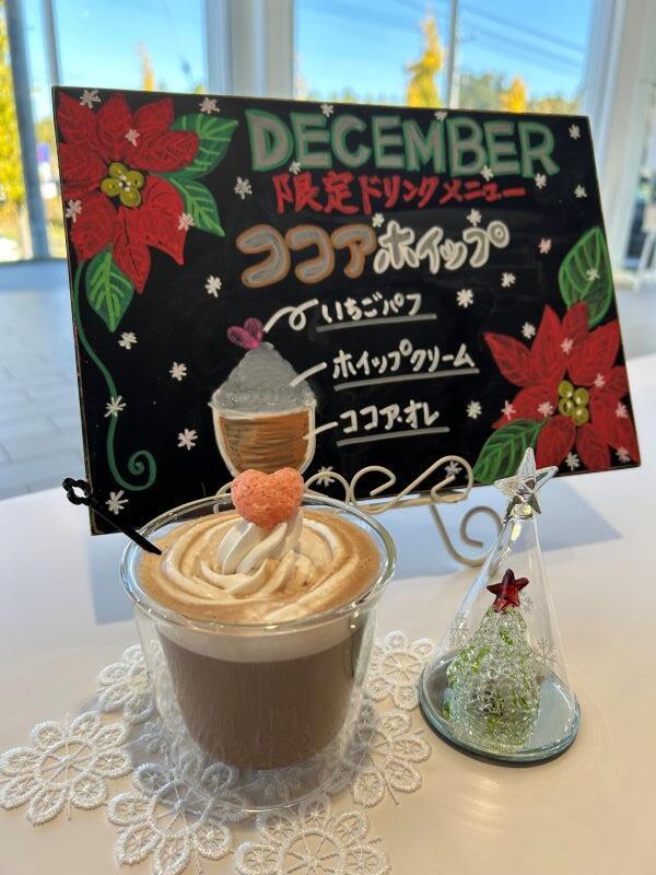 ココア・オレの上に、甘さ控えめのホイップクリームを