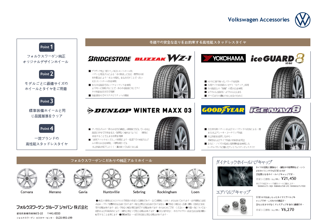 Volkswagen純正アルミホイールをセットでご用意しております。