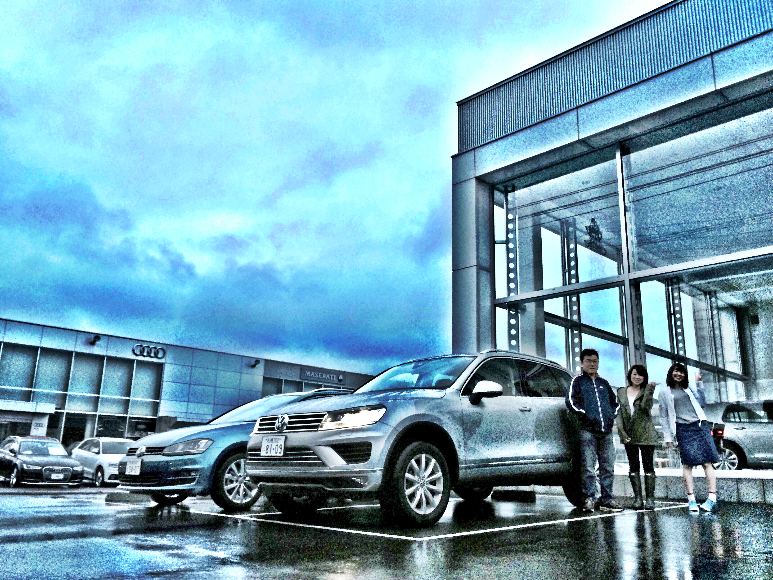 Touaregがショールーム前でエンジンをかけて待っているではないか!!
