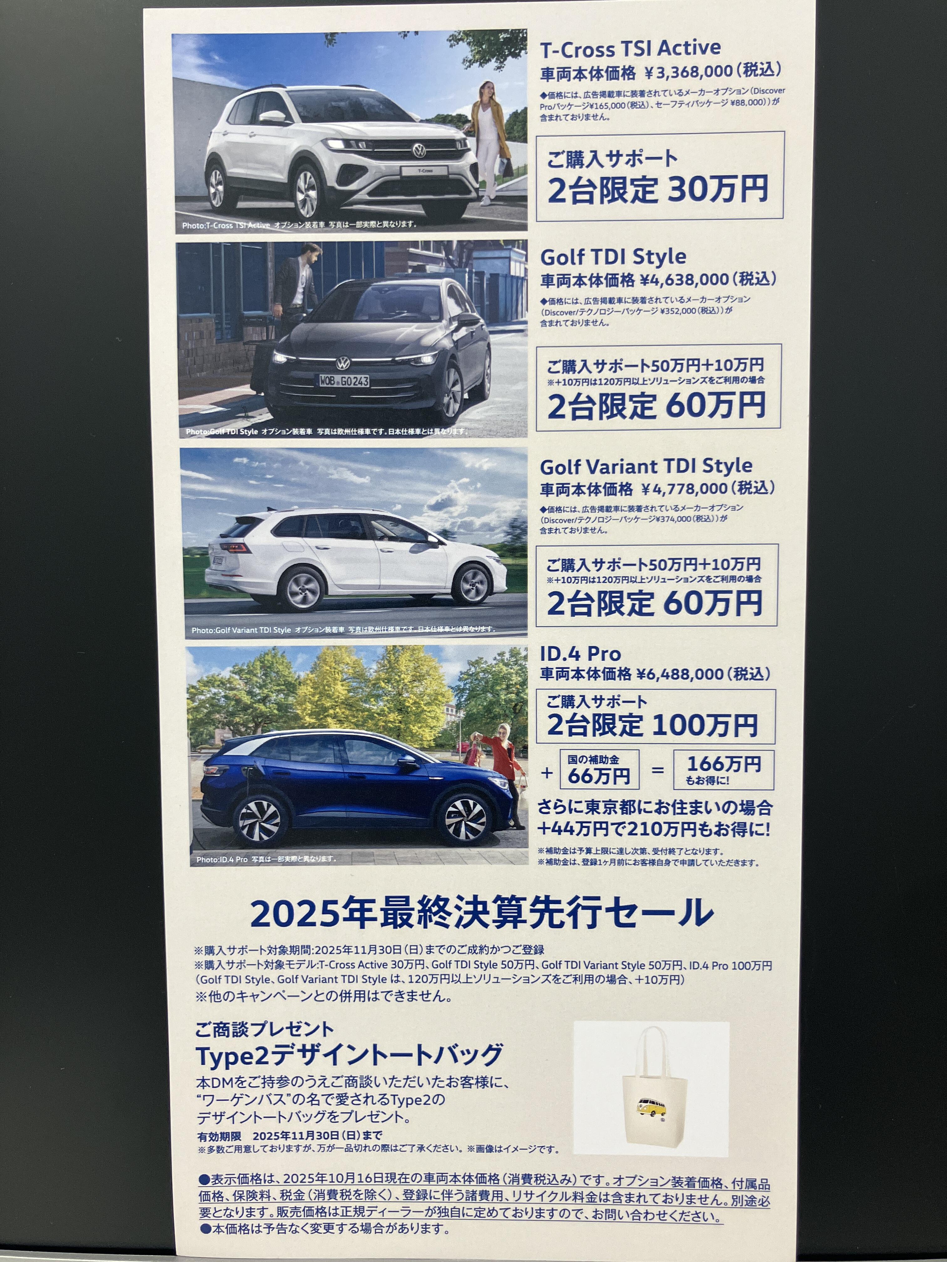 すごしやすい季節になりました。 2025年第4四半期はGolfGolfVariantTDIモデル をおすすめしたい。 最終決算先行セール=先行させる意味はお好みの色、仕様をお選びいただけるうちに。