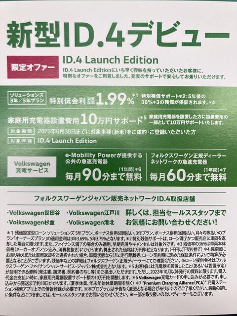 ID.4さんですが すごーーーくいっぱい在庫がある わけではないので 今日中で申し込みましょう 早い者勝ちとも限りませんが 早い方がいいぜ キャンペーンもやってるみたいだぜ