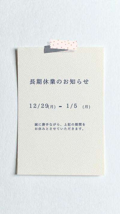 明日、12月29日(月)から、翌年2026年1月5日(月)まで