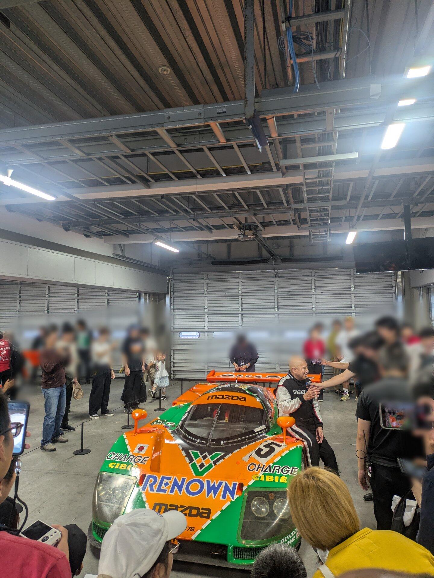 他にも実際にマツダが生み出した歴代のレーシングカーのデモランや、実際に運転席に座らせてもらえたりして様々なサービスを受けることができます。特に今年は以前ニュースにもなっていた、25年の月日を経てマツダに返納された《長崎のRX-7》。こちらは多くの人に注目されていました。