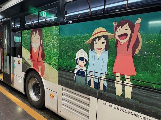 黒部渓谷の移動はロープウェイや電動バスなのですがバスのラッピングが可愛かったです。