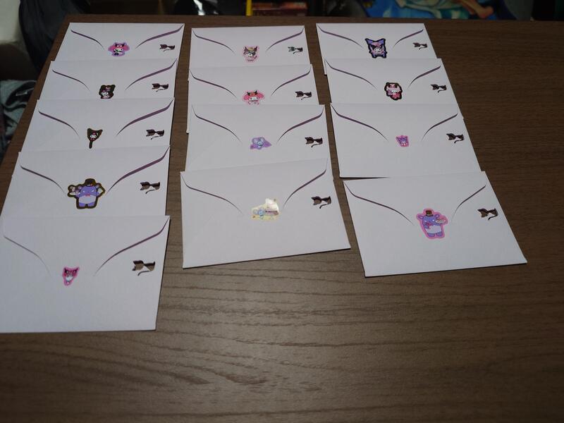 それぞれの封筒に家族(猫たちを含む)のチェキを入れて