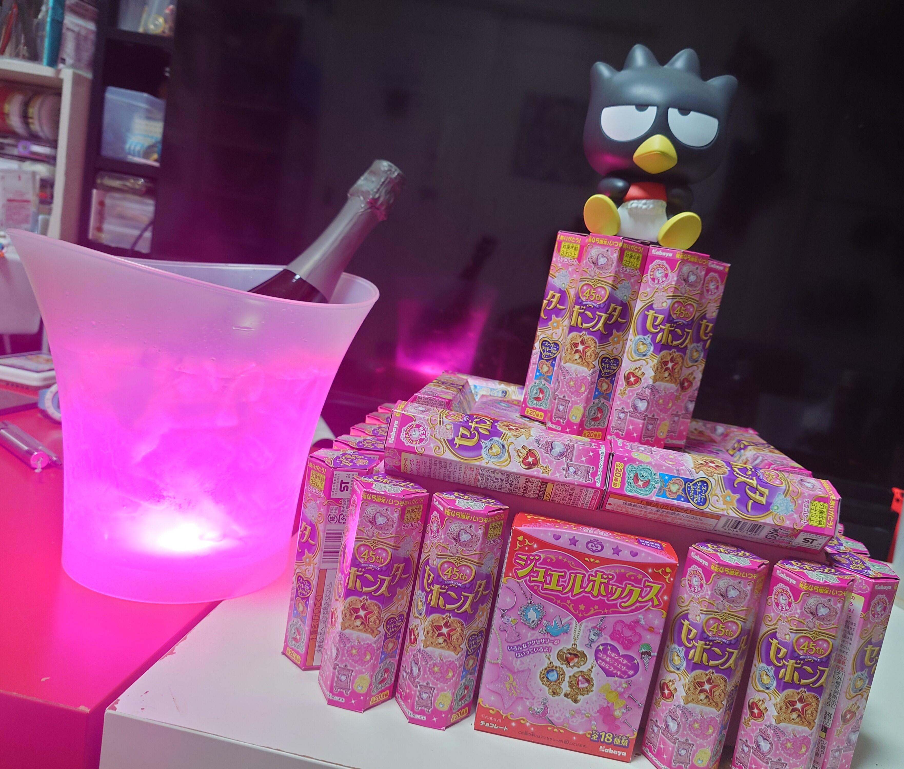 ピンク色の段ボールが売ってなかったため段ボールをピンクに塗るところからです