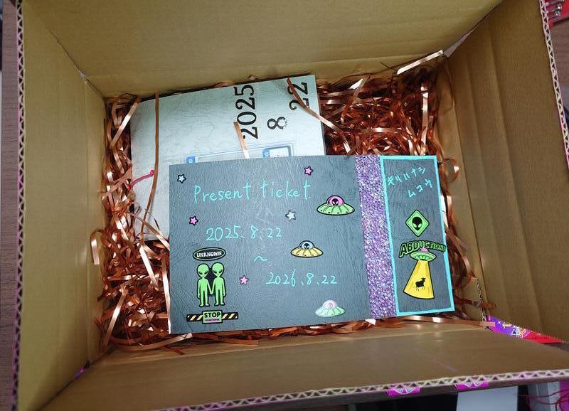 ちぎるのがもったいないと言われそうなので封筒にして開けられる様にしているのと