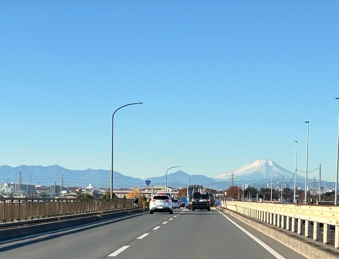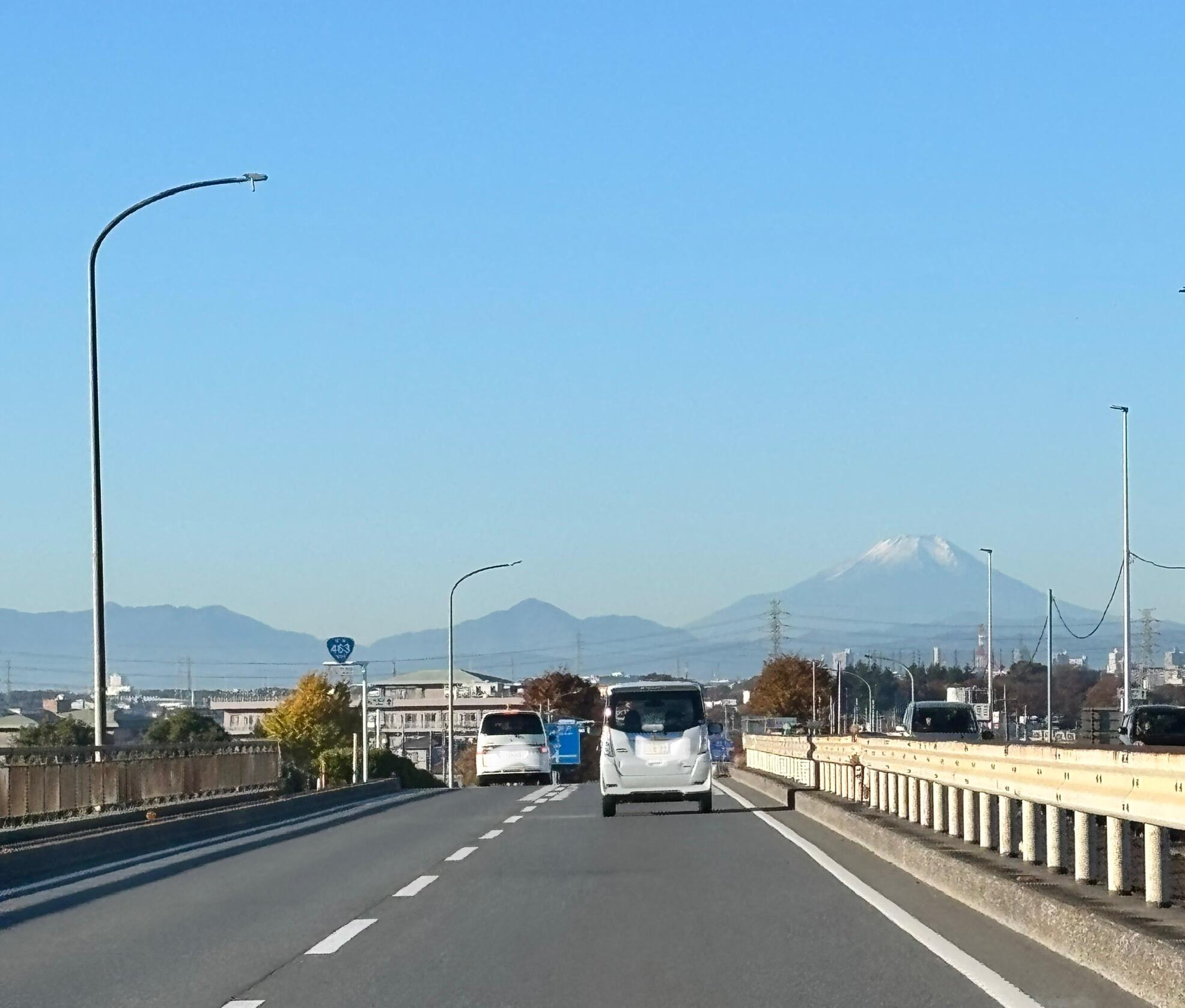 めっちゃ白くなってきましたー! 朝の通勤路です。 渡る橋からの絶景スポットです!富士山!
