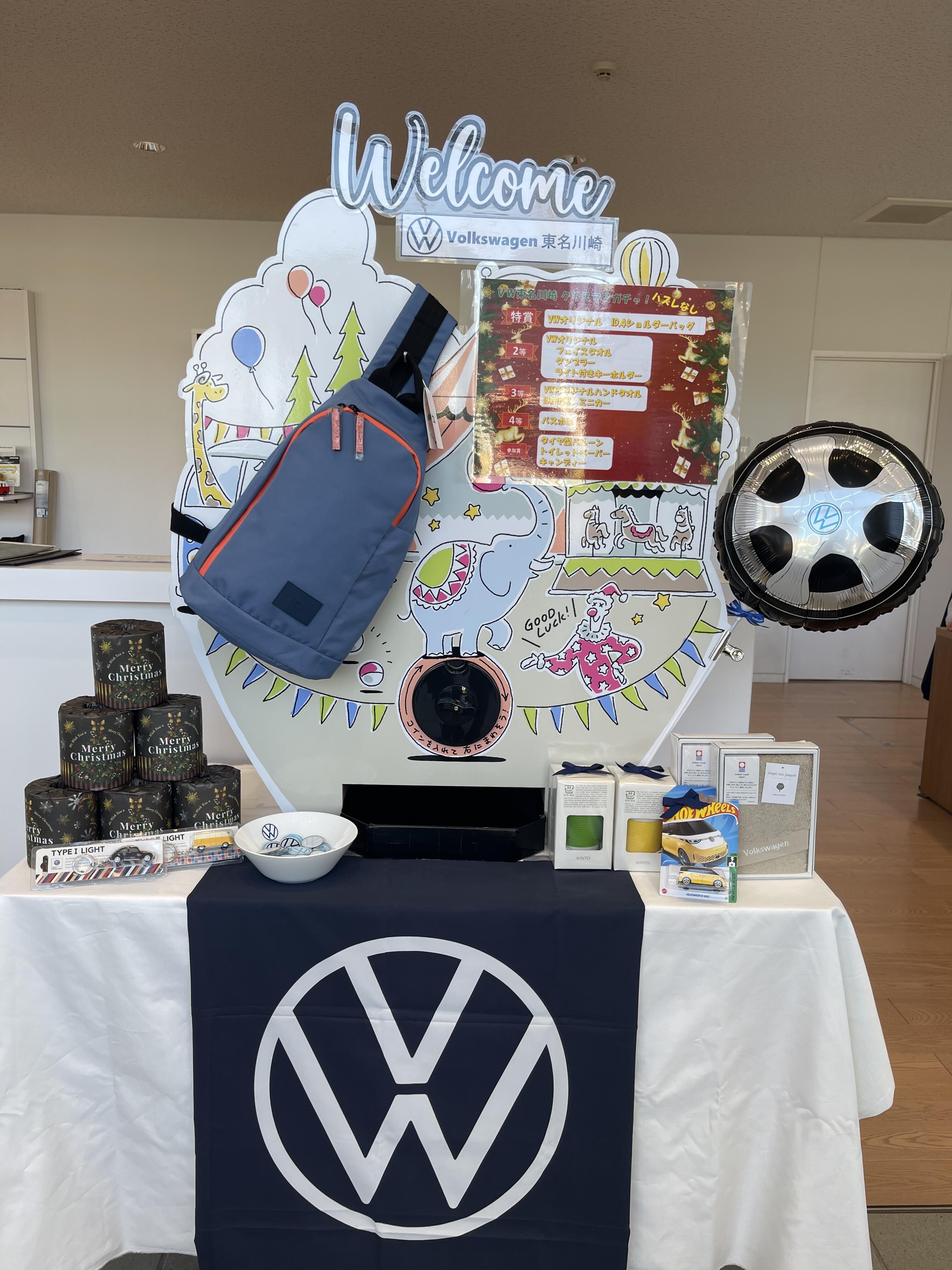 いつもフォルクスワーゲン東名川崎をご利用いただきありがとうございます昨年、大変好評だったクリスマスガチャを今年も開催しておりますささやかではありますが、日頃の感謝を込め当店からのクリスマスプレゼントです景品はフォルクスワーゲンのオリジナルグッズやお子様に喜んでもらえるものを揃えました。ご家族で楽しんでいただけるイベントになっていますので、ぜひ当店に足を運んでいただきツリーに吊るしてある景品をGETしに来て下さい!スタッフ一同皆さまのご来店を心よりお待ちしております