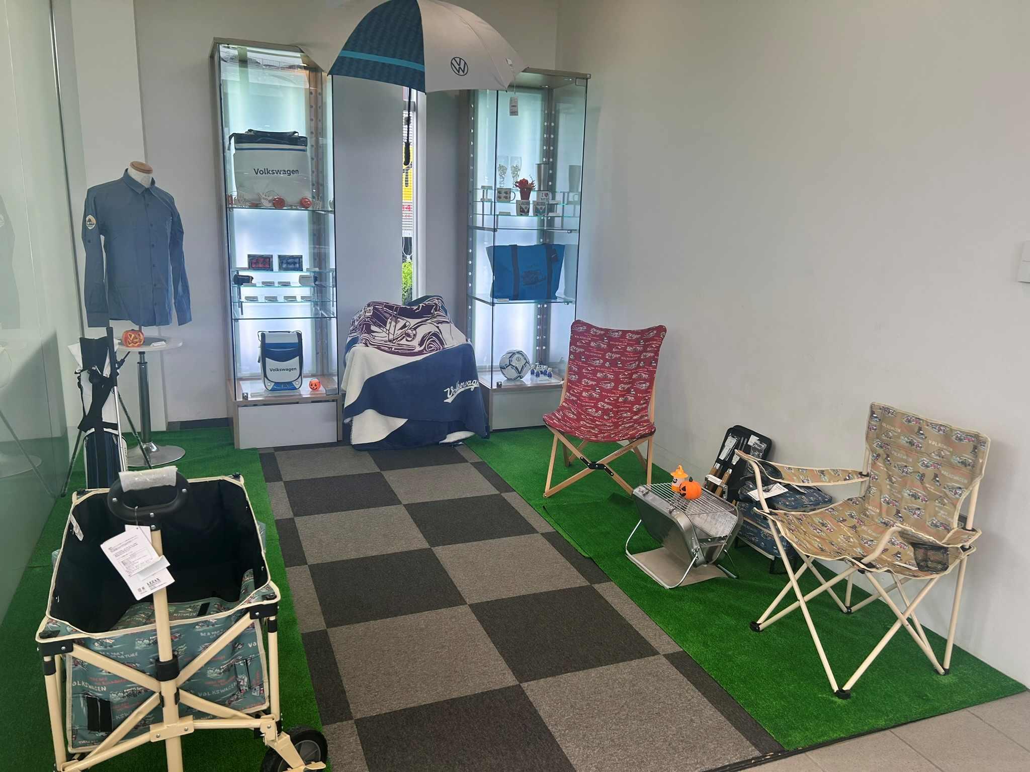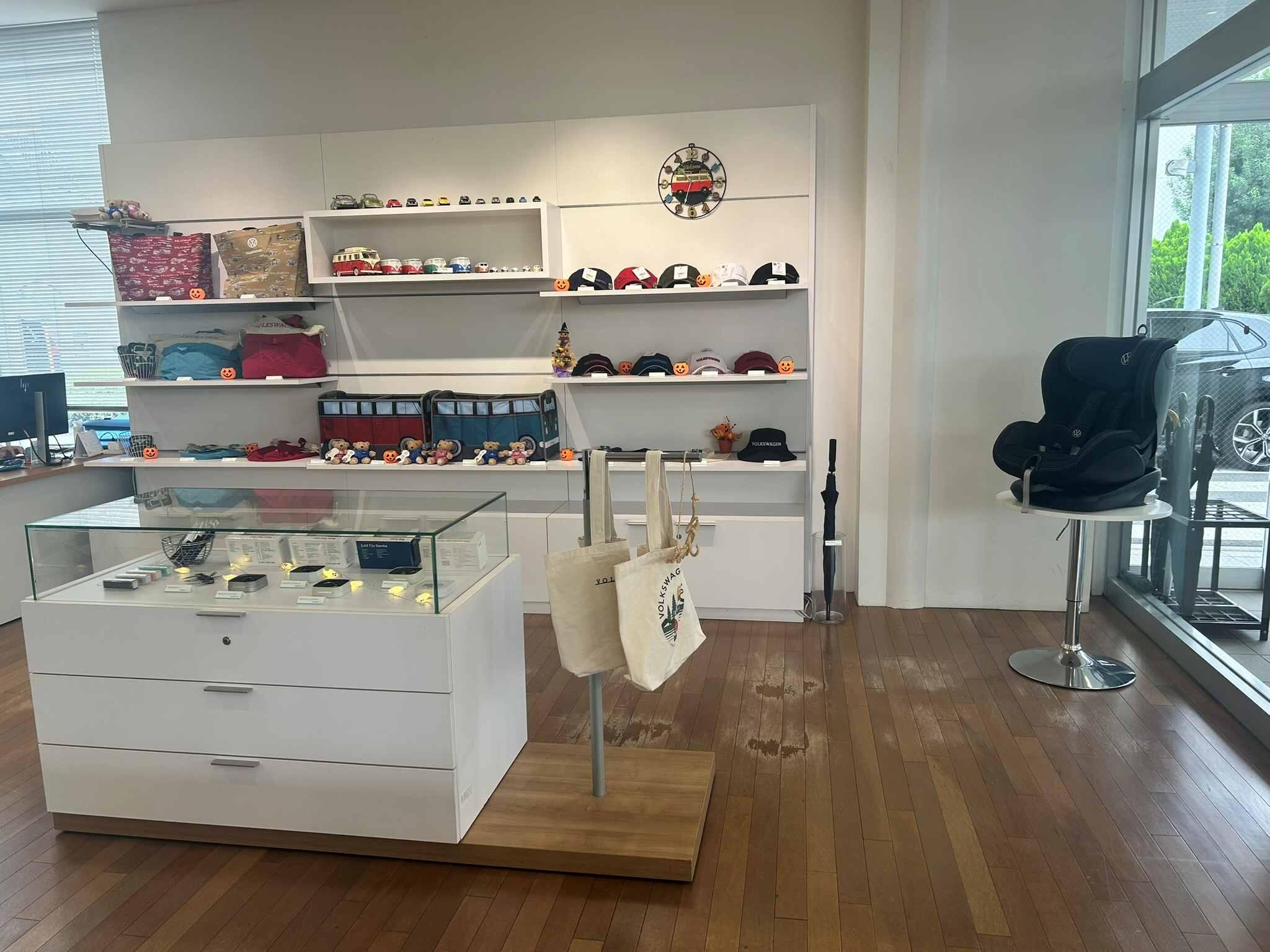 キーホルダーからゴルフグッズ、アウトトアグッズなどフォルクスワーゲンオリジナルグッズを多数展示しております。