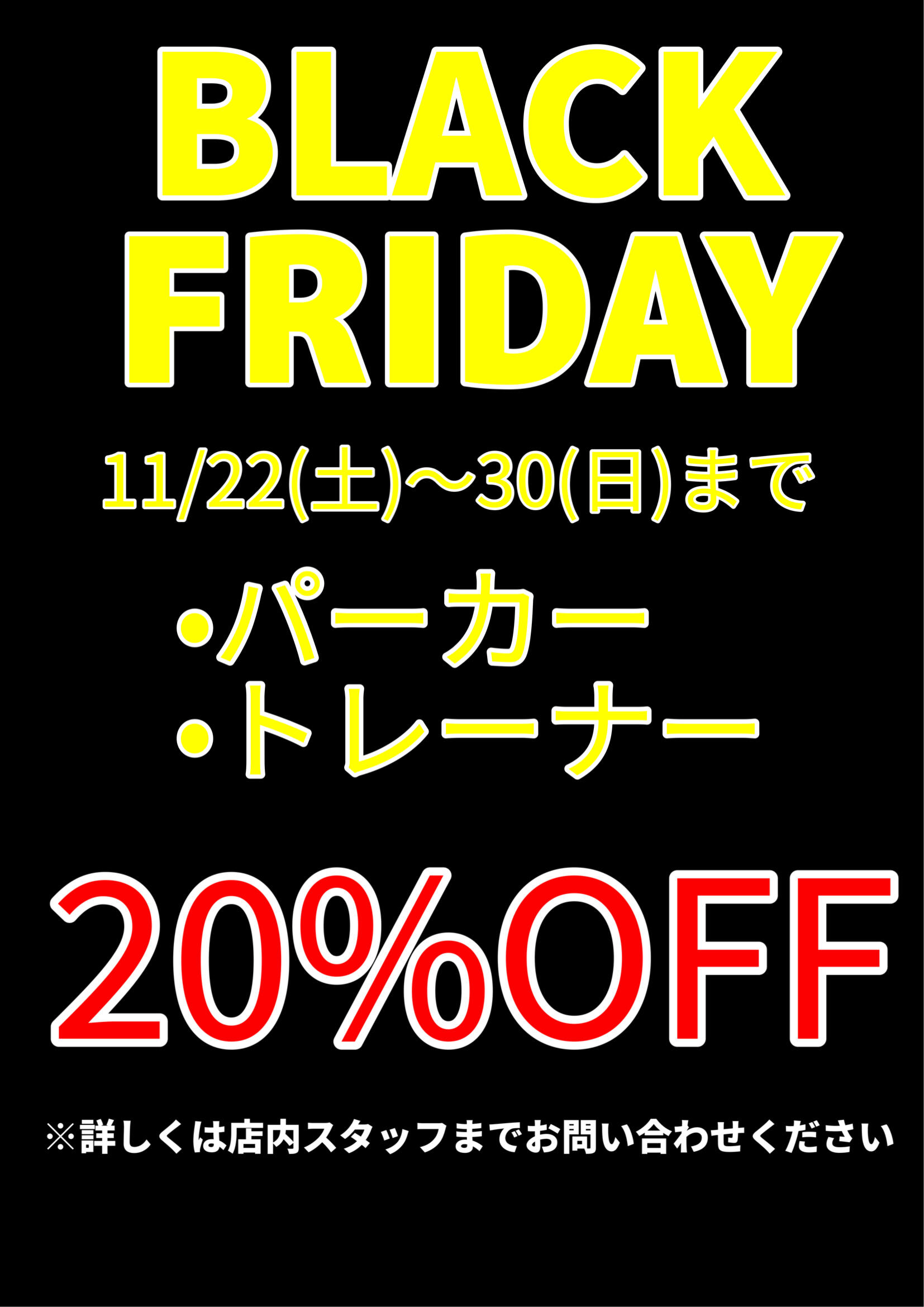 BLACK FRIDAY に便乗して、アパレル商品もSALEを開催いたします