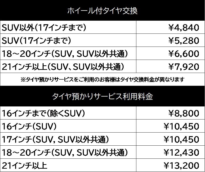 タイヤ交換料金を下記の通り改定させていただくこととなりました。