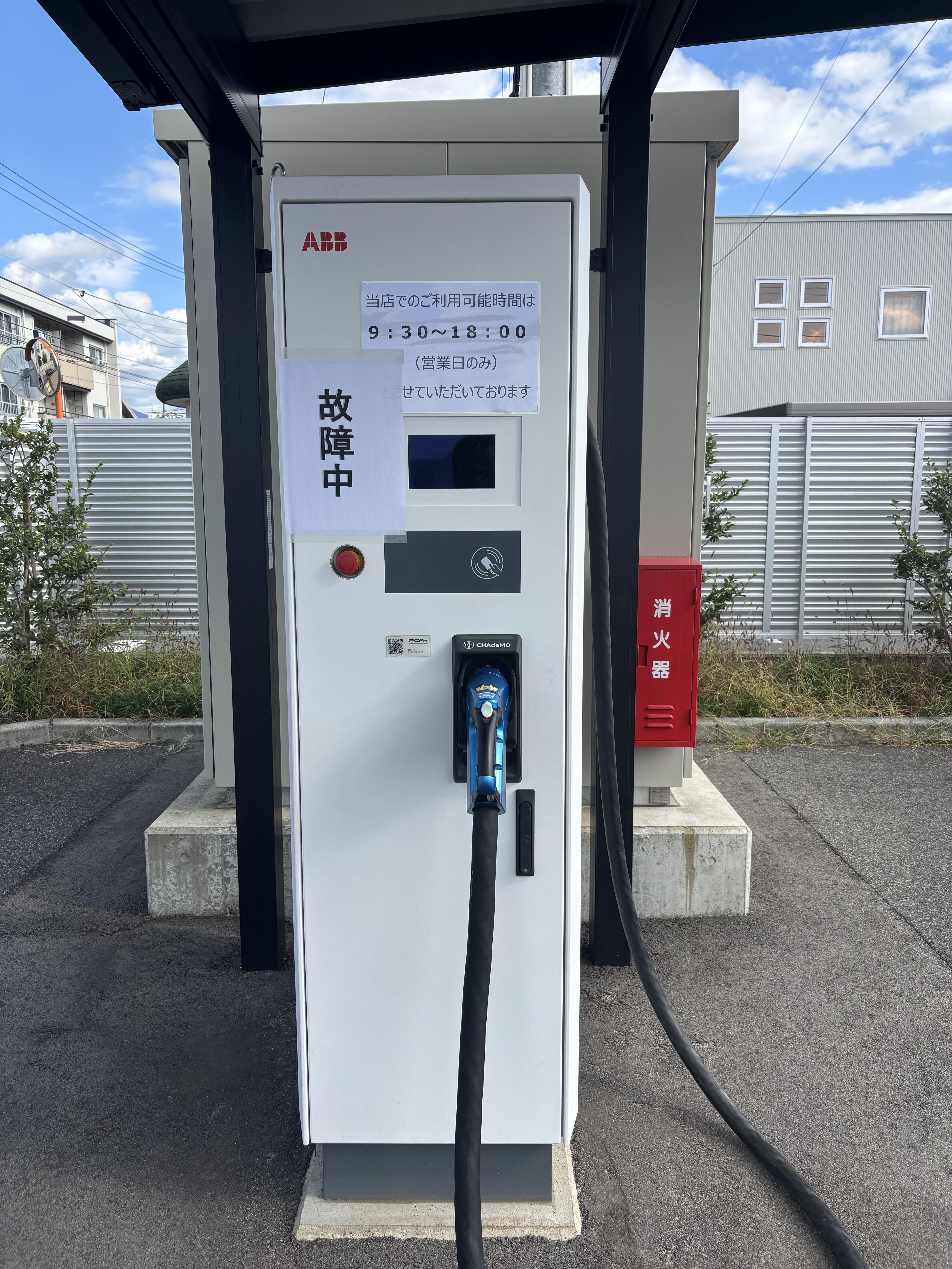 現在駐車場に設置している電気自動車用の急速充電器は、故障中のためご利用いただくことができません。